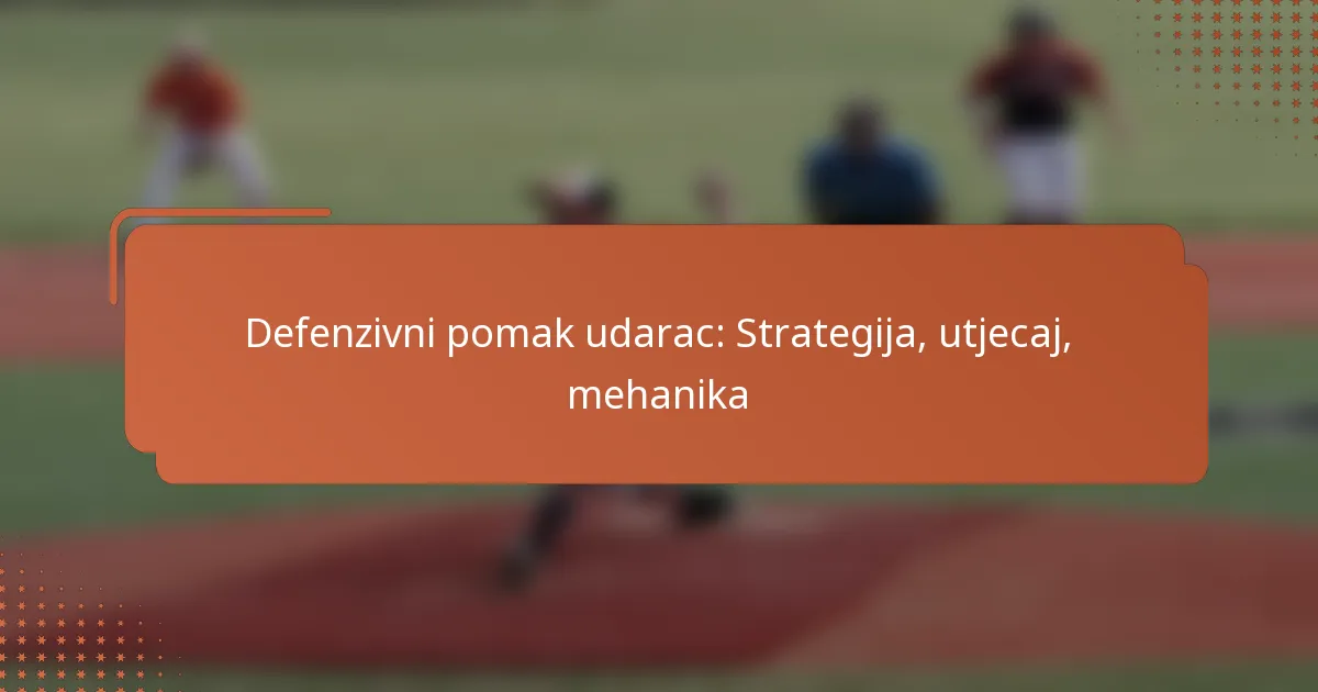 Defenzivni pomak značajno mijenja strategiju igre postavljanjem igrača na način koji maksimizira njihove šanse za igru protiv specifičnih udarača. Ova taktika ima za cilj smanjiti prosjeke udarca i ukupnu ofenzivnu učinkovitost predviđanjem gdje će lopta vjerojatno biti udarena na temelju statističke analize učinka igrača.